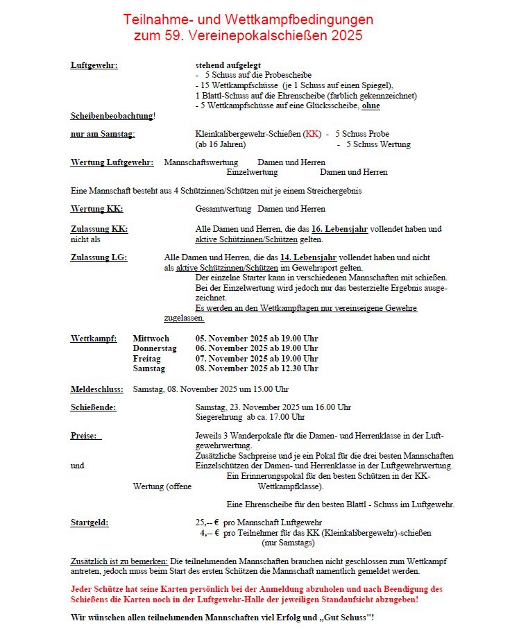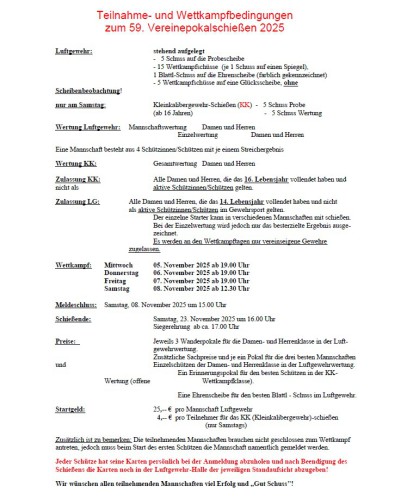 vom 05.11. - 08.11. fand wieder unser jährliches Vereinepokalschießen statt. Wieder konnten wir Zahlreiche Vereine, Gruppen, Gemeindeorgane und viele weitere Teams begrüßen.